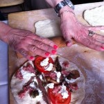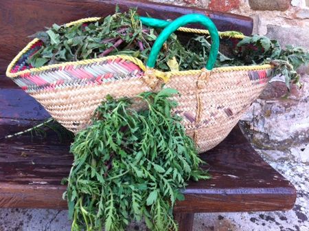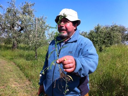 Next day, yet another chef, the acclaimed Salvatore Denaro, originally from Sicily but an adopted Umbrian, led the guests through the vast fields and side trails of Villa Campestri, plucking the wonderful wild herbs that lay everywhere and deliciously explaining how they could be used in the kitchen. Baskets were filled with various wild greens, to be used later in the kitchen as part of a meal that relied almost totally on those things in everyone’s cupboard: dried beans and lentils, broad beans both dried and fresh, white polenta, and of course pasta. And there were vegetables of the moment (fresh peas, artichokes, asparagus) along with the freshly plucked wild herbs. The guests became sous-chefs, mixing and folding and peeling and plucking, and later all sat down to the noon meal, which was served on the terrace to great acclaim.