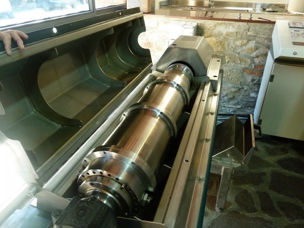 Dalla gramola le paste sono immesse nel decanter che per centrifugazione separa l’olio dal nocciolina e dalla sansa esausta.